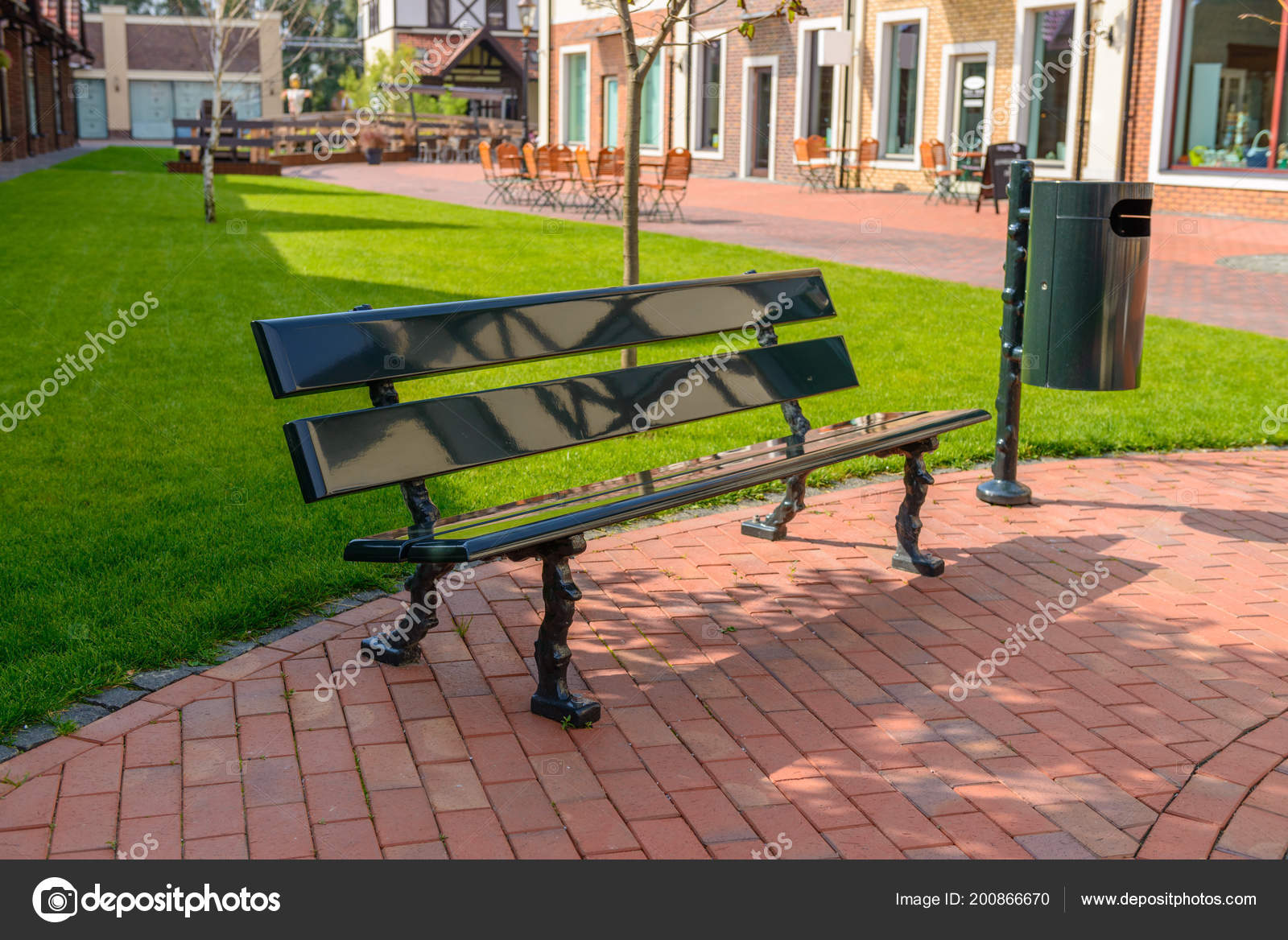 Wooden Bench And Trash Can In The Park Stock Image Image Of Outdoor Tree 125454617 from thumbs.dreamstime.com