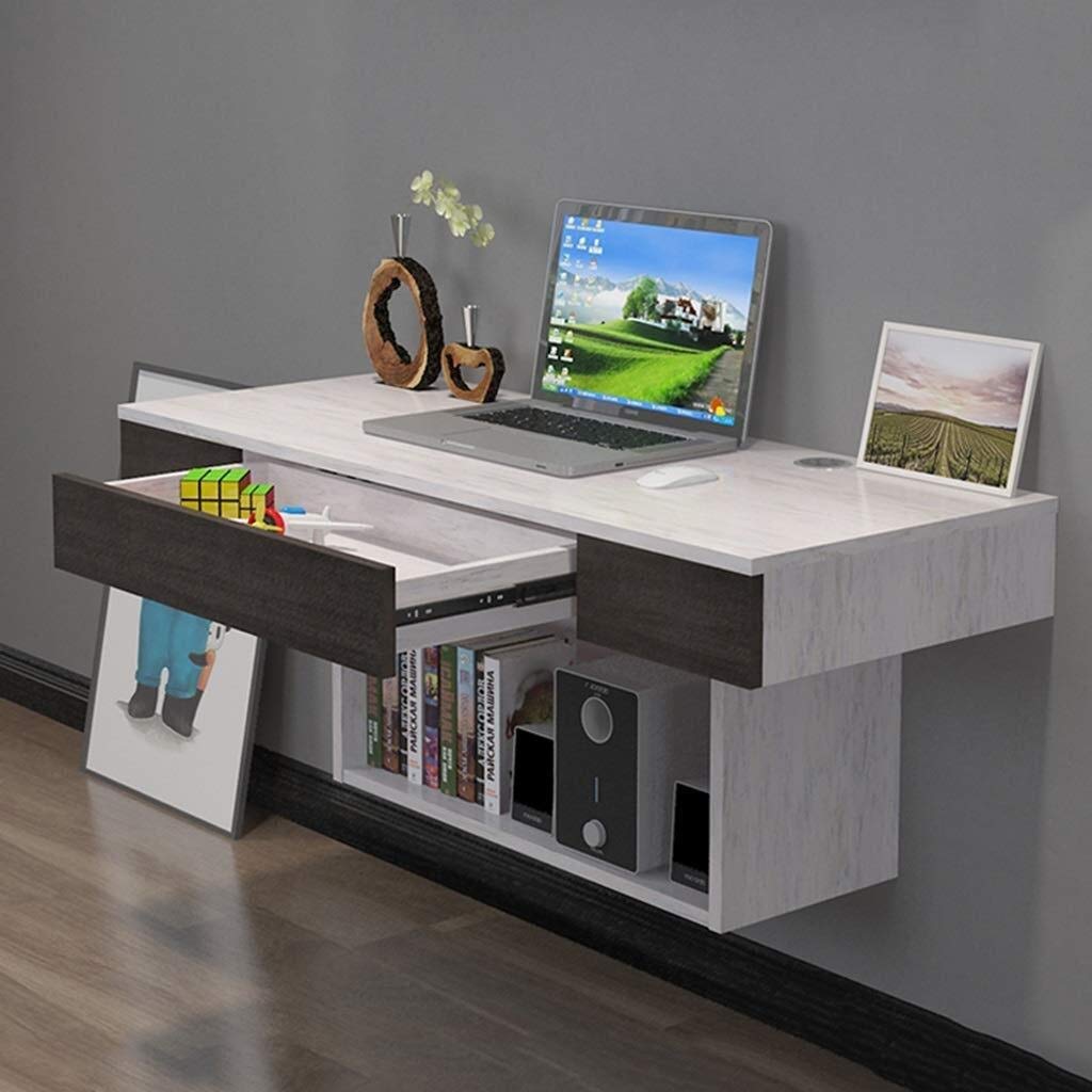 Computer Desk And Bookcase Combination. An amazing white floating desk with bookshelf. Perfect if you need to maximise your storage space and also have enough space to work on.