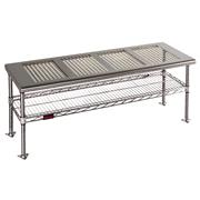 They are designed for quality, cleanliness and durability for superior cleanroom performance. 17 overall height, brushed finish. Gauge type 304 stainless steel. For 72l gowning bench order (2) 1436s undershelves.
