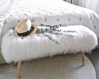 Faux Fur Bench Cushion. Dimensions are 45l x 16w x 17h. Carvapet luxury soft faux sheepskin chair cover seat cushion pad plush fur area rugs for bedroom, 2ft x 3ft, white.