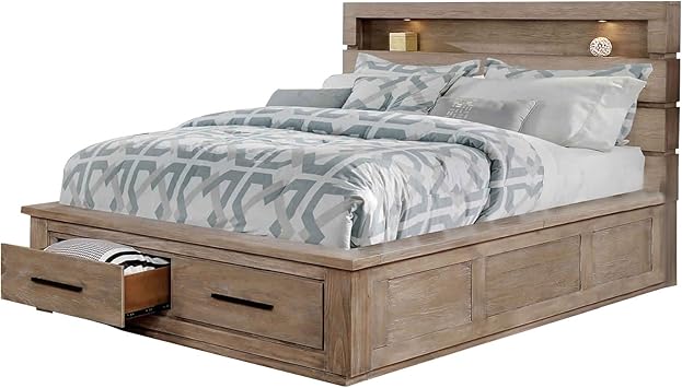 Featuring a bookcase style headboard, this king size bedroom set has sufficient space to store knickknacks and small, yet important items.