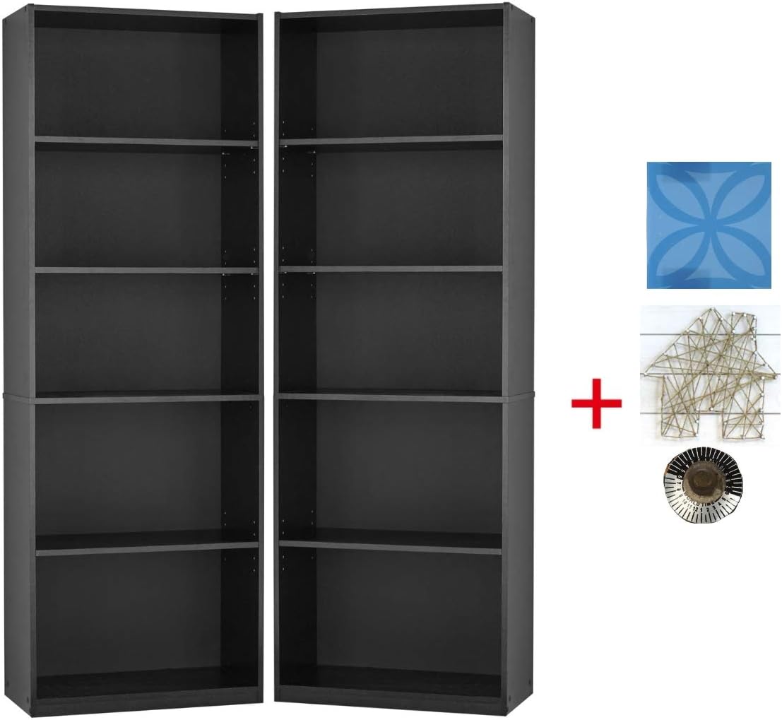 The practical bookcase features a combination of 3 adjustable shelves supporting 25 lbs each, and a single fixed shelf supporting up to 35 lbs in weight.