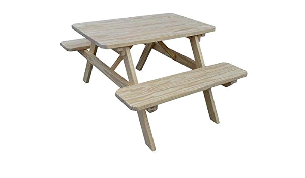 Picnic Table Attached Benches. It has the classic design of a table with attached benches. It is very unique in its design, though.