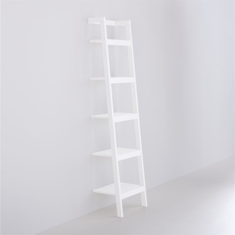 Sawyer White Leaning 18 Bookcase. Solid mahogany and mahogany veneer bookcase ladders five deep shelves. Score big savings crate barrel sawyer white leaning 18.