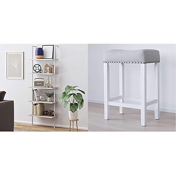 Amazon Com Nathan James Theo 5 Shelf Wood Modern Bookcase Open Wall Mount Ladder Bookshelf With Industrial Metal Frame Gray Oak White Furniture Decor from m.media-amazon.com