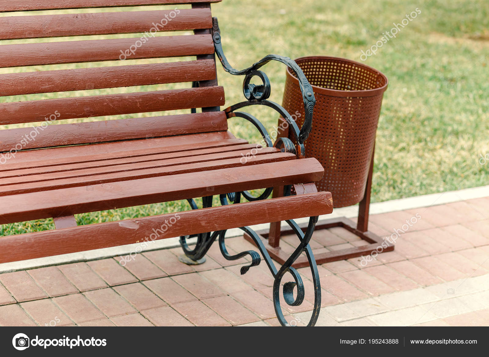 Park Bench And Trash Can 3d Illustration Stock Photo Download Image Now Istock from media.istockphoto.com