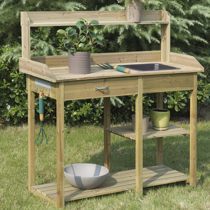 This potting bench is amazing. They made the back of it with lattice which is a nice touch to make your bench appear a little different at first glance. Simple and sturdy diy potting table. I've long wanted a potting bench with a nice deep sink for scrubbing and soaking pots and vegetables, so when i found this sink at a local habitat store for just $10, i snatched it up.