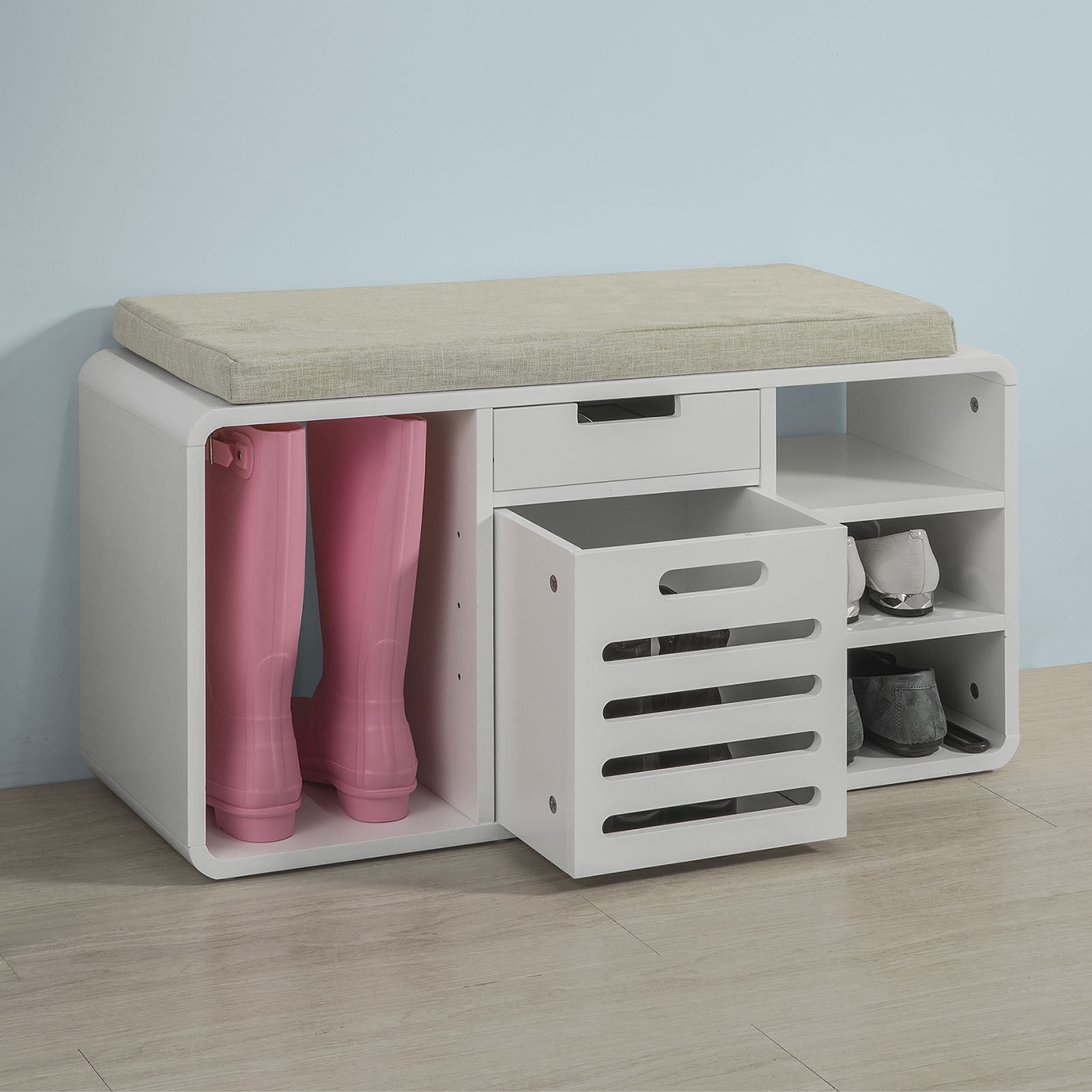 White Shoe Bench With Cushion. The simple, classical design with a touch of tradition looks great with other great shoe rack.rups85great shoe rack, ideal for what we needed and it was on sale in the store. We added the ikea cushion to pad the seat.4.