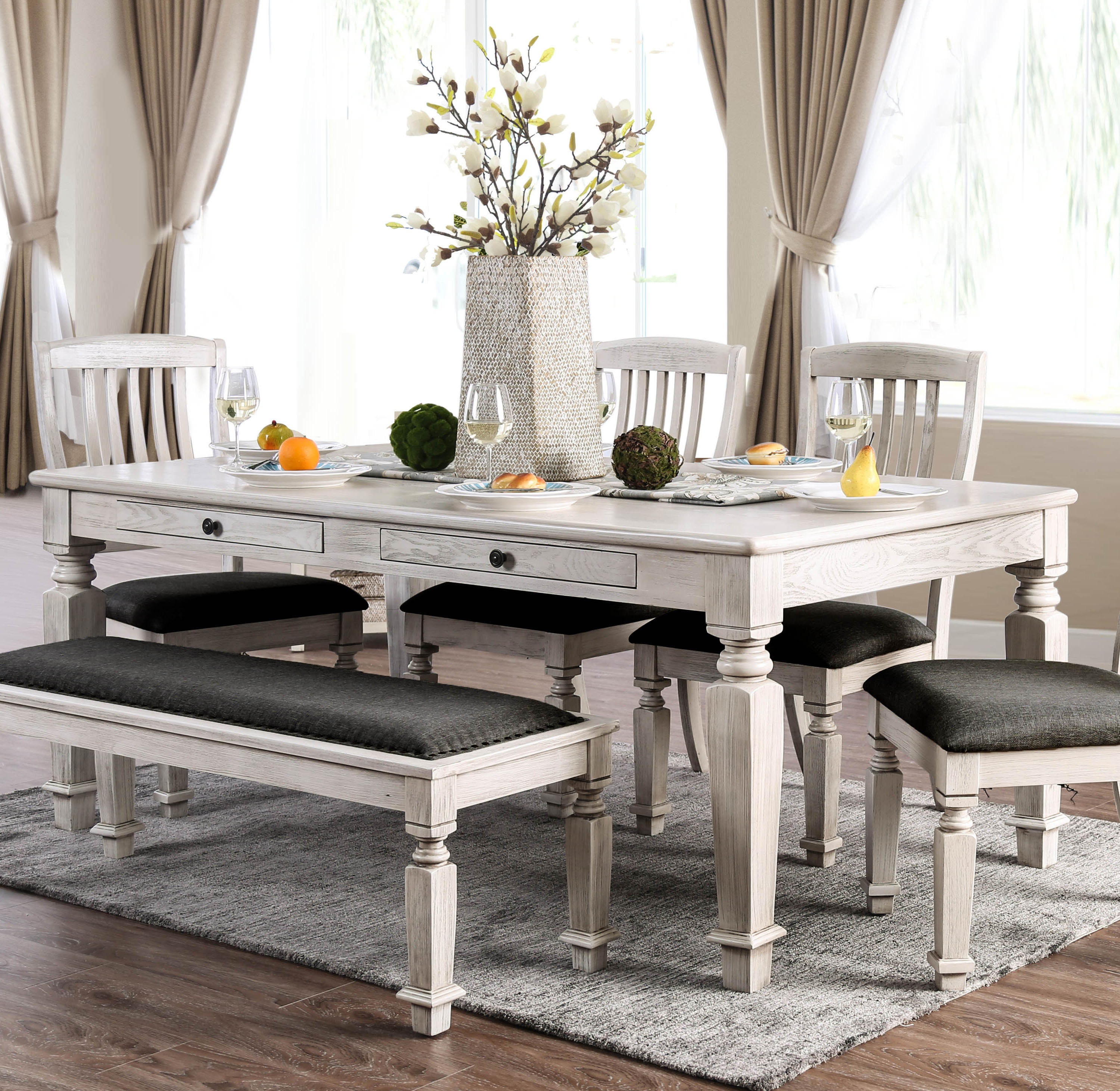 Brand new dining table and bench made from reclaimed wood stained to medium oak colour both complete with metal legs in black (chairs not included). Shop for wood dining benches in dining benches. Related searches for white bench dining table: Rustic wood barn wood bench made of real pine wood.