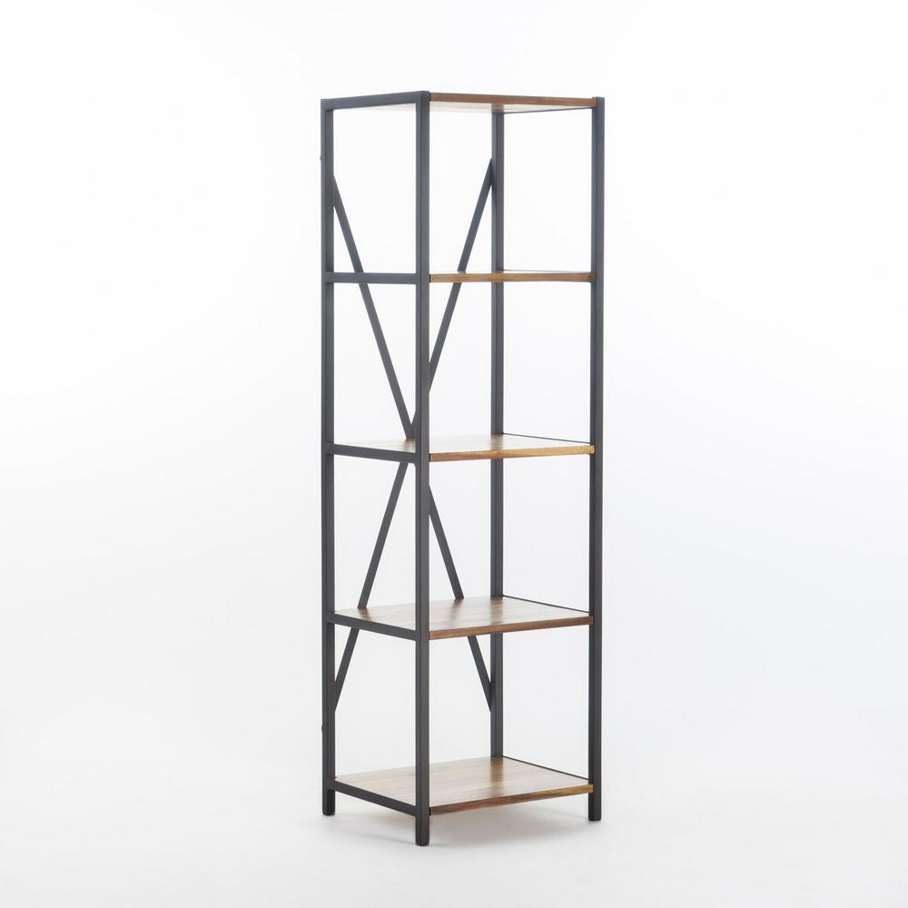 Rated 4.65 out of 5 stars. Organize your living room with modern bookshelves & bookcases. Pine wood shelves pine wood veneer over mdf drawers five full shelves two bottom drawers black metal frame weight capacity 70 lbs per.
